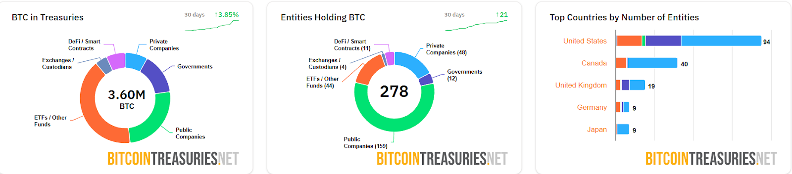 Bitcointreasuries.net verilerine göre yeni şirket satın alımının ardından, 278-2 ° ‘nin üzerinde kamu enstitüsü şu anda Bitcoin’e sahip. Bu sayı sadece 124 hafta önceydi.