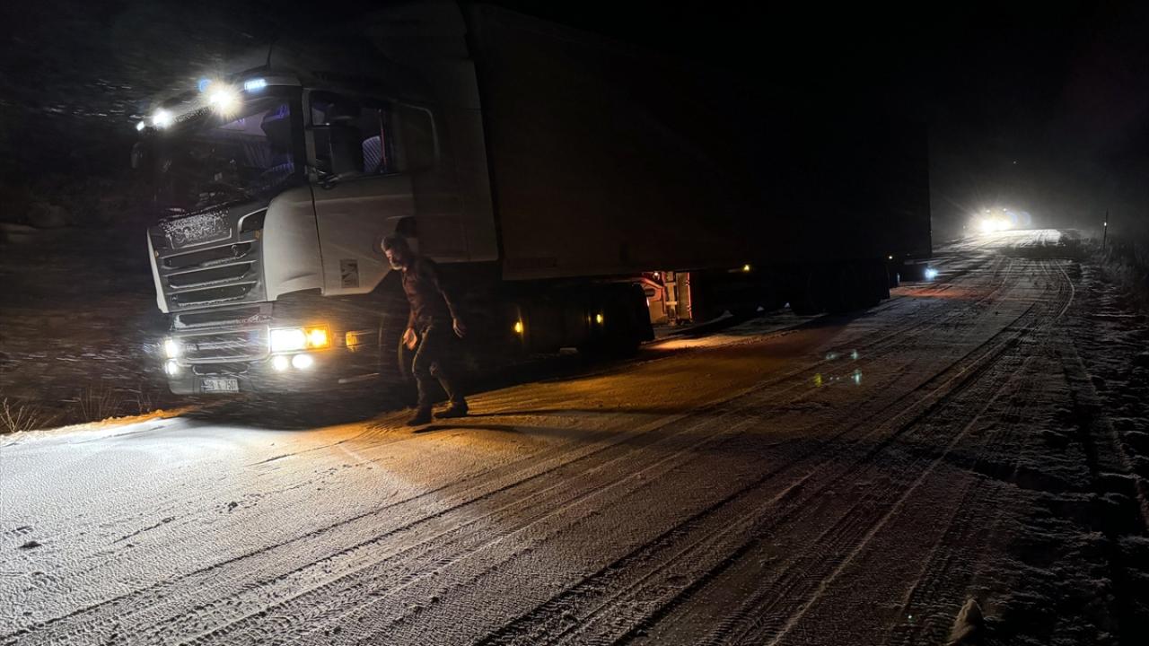 Ardahan-Artvin karayolunun Sahra rampasında buzlanma nedeniyle 9 kamyon yolda mahsur kaldı.