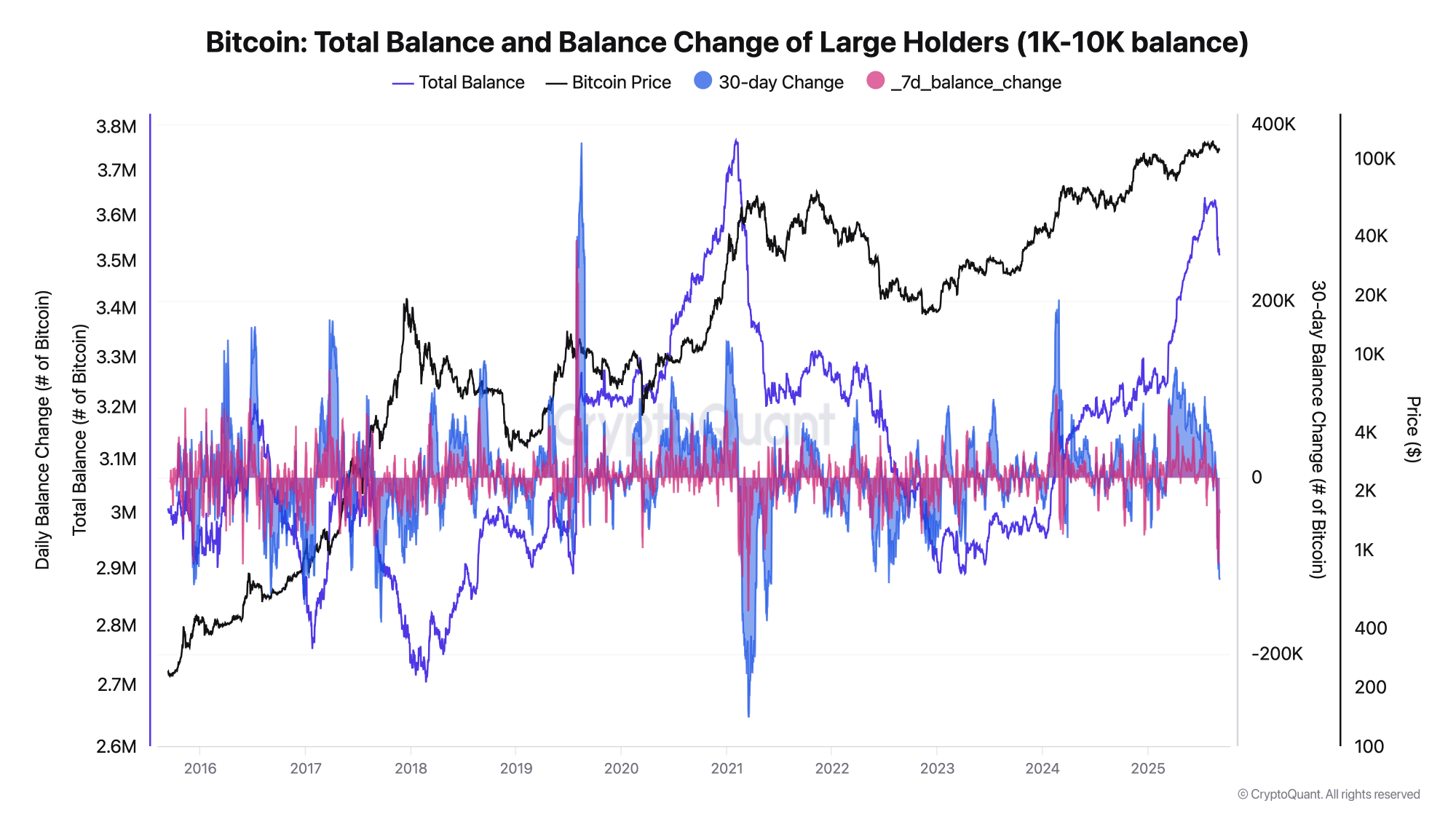 Geçen haftanın sonuna kadar 30 günlük balinaların bakiyesindeki düşüş -2022’nin ortasından bu yana en büyüktü. O zaman, BTC/USD geçen ay pazardaydı ve 15 Kasım Kasım ayında.