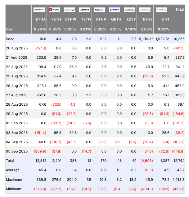 Avrupa Kripto Varlık Yöneticisi Araştırma Başkanı Andre Dragosch tarafından Pazartesi X’e yüklenen rakamlar, ETP Bitcoin’in 5 günde (5 Eylül’e kadar) 444 milyon dolar eklediğini gösteriyor.