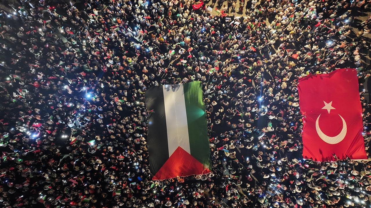 Suikastçı İsrail, 7 Ekim 2023’ten itibaren Filistin Strip Gazzesi ve binlerce insan saldırılara dikkat çekmek için hayatını kaybetti ve 15 hükümet dışı örgütün yanı sıra Beyazit Meydanı’nda toplanan birçok vatandaş.