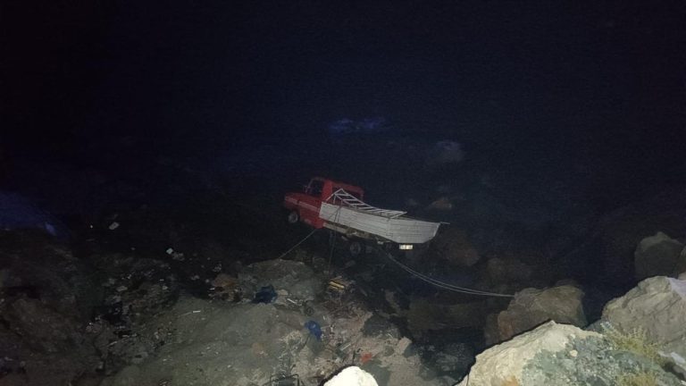 El frenini çekmeyi unuttu: Kamyonet denize düştü