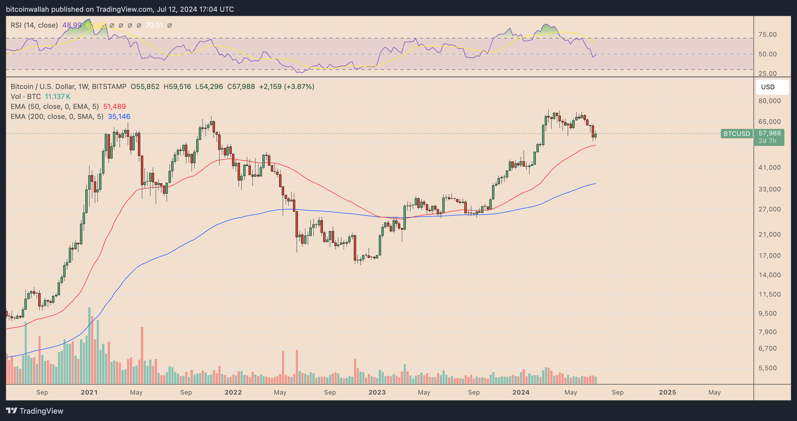 Buna karşılık, BTC’nin haftalık göreceli gücü düzeltme modunda olup Mart ayındaki 88 aşırı alım seviyesinden 12 Temmuz’da 45,50 nötr seviyesine düşüyor.