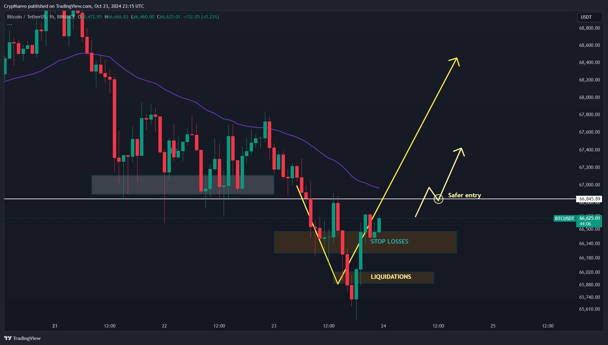 BTC/USDT 1 saatlik grafik. Kaynak CrypNuevo/X